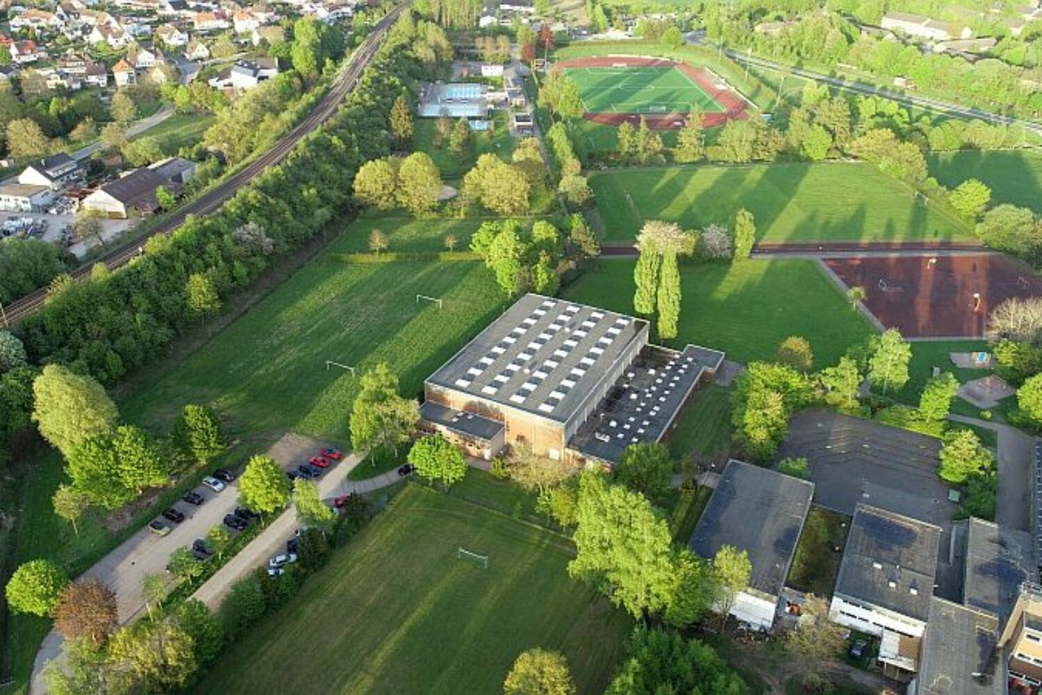 Einmal durch die in unmittelbarer Nähe liegenden, hervorragenden Sportanlagen (1 x große Sporthalle (für Spitzensport geeignet), 1 x Turnhalle, 1 x Gymnastikhalle, 2 x Sportplätze inkl. 400 m Tartanbahn, beheiztes Freibad mit der Ausbildungsmöglichkeit für Schwimmen und Rettungsschwimmen sowie für Wasserball geeignet, Outdoor-Basketballplatz und einen Hockeyplatz) und durch die gute Kooperation der Schule mit den Sportvereinen.