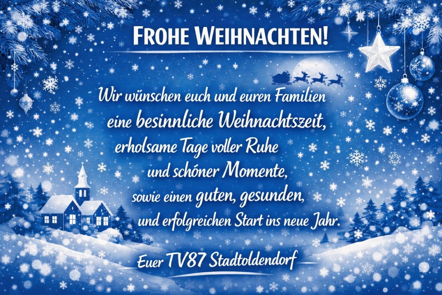 22 Dez. 2025 tv87 Aktuelles 22. Dezember 2025 tv87 Weihnachtsgruß Der Vorstand wünscht allen Mitgliedern und deren Familien ein Frohes Weihnachtsfest und einen guten Start in ein gesundes, neues Jahr!