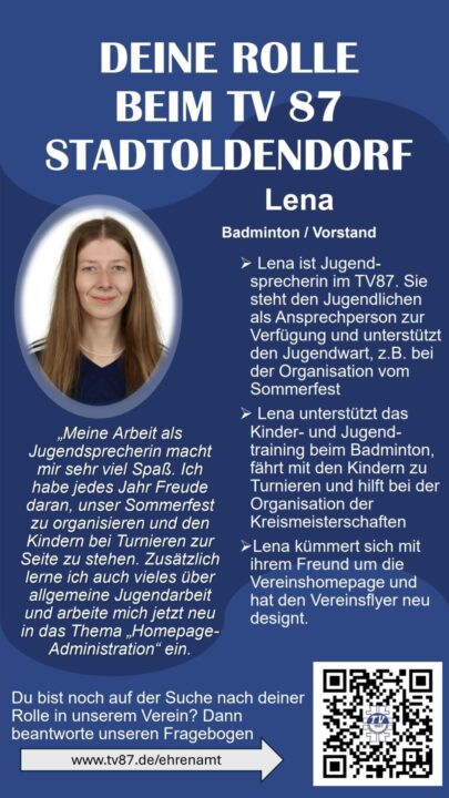 in irgendeiner Form im TV 87 Stadtoldendorf ehrenamtlich mitzuarbeiten oder bei Bedarf zu