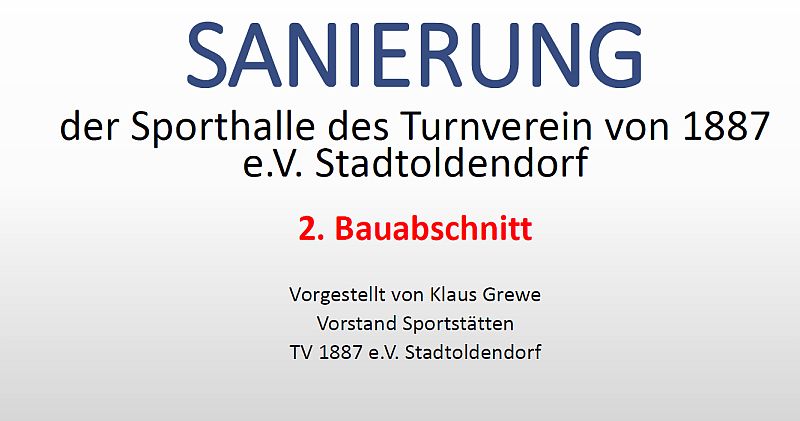 Auf diesen Seiten erläutern wir, welche Sanierungsarbeiten in den folgenden Jahren an unserer TV-Sporthalle durchgeführt werden sollen. Es beginnt 2018 mit dem 1. Bauabschnitt (1. BA) und soll dann mit dem 2. BA und 3. BA fortgeführt werden.