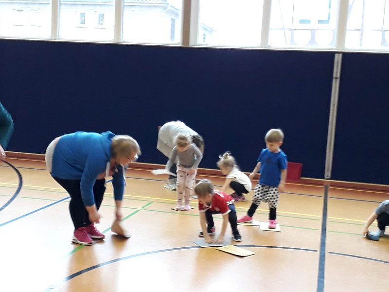 Das vielseitige sammeln von vielseitigen Bewegungserfahrungen, mit und ohne Materialien/ Geräten stehen im Vordergrund.